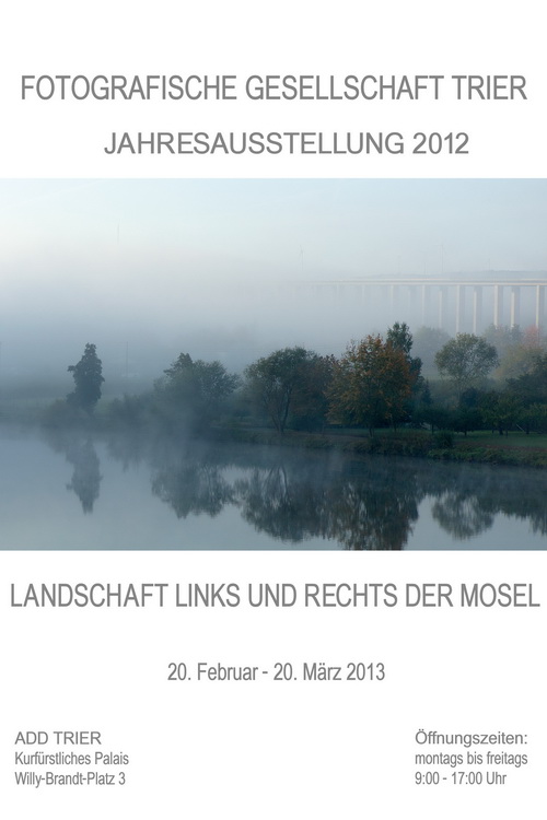 | Übrigens können Sie noch bis zum 13. März Bilder unserer in der Tufa erfolgreichen Metz-Ausstellung in der Steipe sehen. Den Jahresflyer mit allen Veranstaltungen im laufenden Jahr 2013 finden Sie wie üblich auf der website www.foto-trier.de unter aktuell.